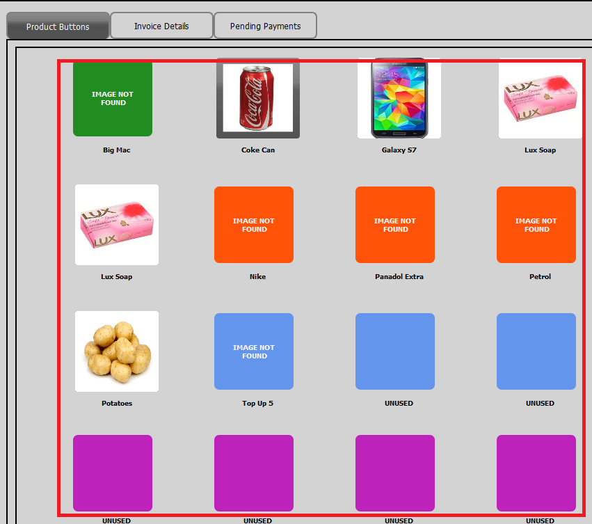 Product Buttons Tab: Product buttons tab will be shown only when enabled from the settings dialog. Product buttons basically represent the stock in the system. It is the quickest method of adding items to the sale. If you do not need to adjust the sales price, by pressing any of the POS button, the item will be added to the sales table. If you want to change default quantity or discount values, please change first before pressing product button.