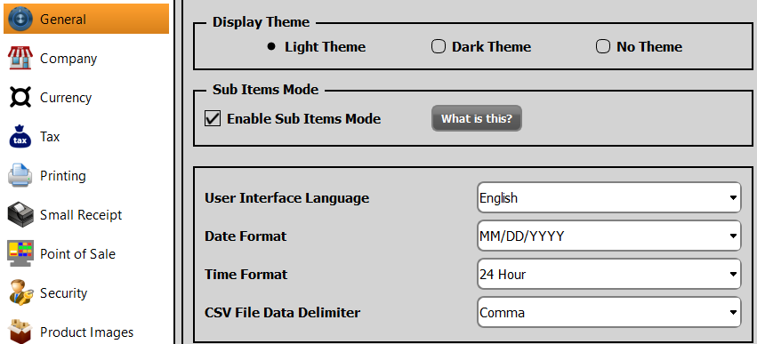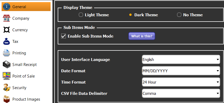 You can customize Asaan POS through configurable settings. This section describes different settings and how you can use them. You can launch Settings dialog by clicking on Settings icon on the home screen, or via Tools menu option. It is important to note that you would have to configure each computer separately after installation of the software.
