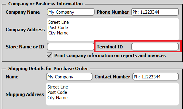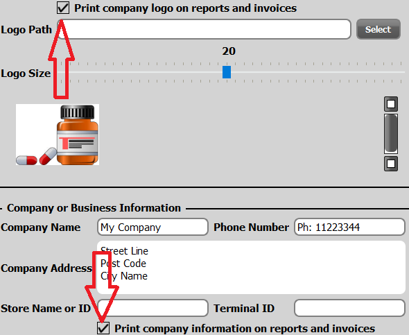 Print Company Information and Logo: There are two check boxes, if checked then company information and logo will be printed on receipts, reports and purchase orders as shown in the following screenshot: