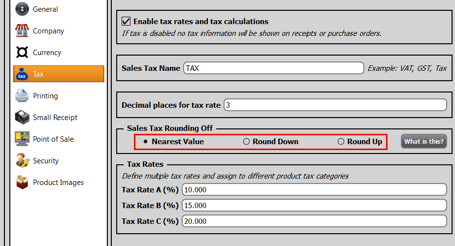 Enable Tax Rates: By default this mode is enabled. In some countries there is no sales tax, or if your requirement is to disable sales tax calculations, then uncheck this box.